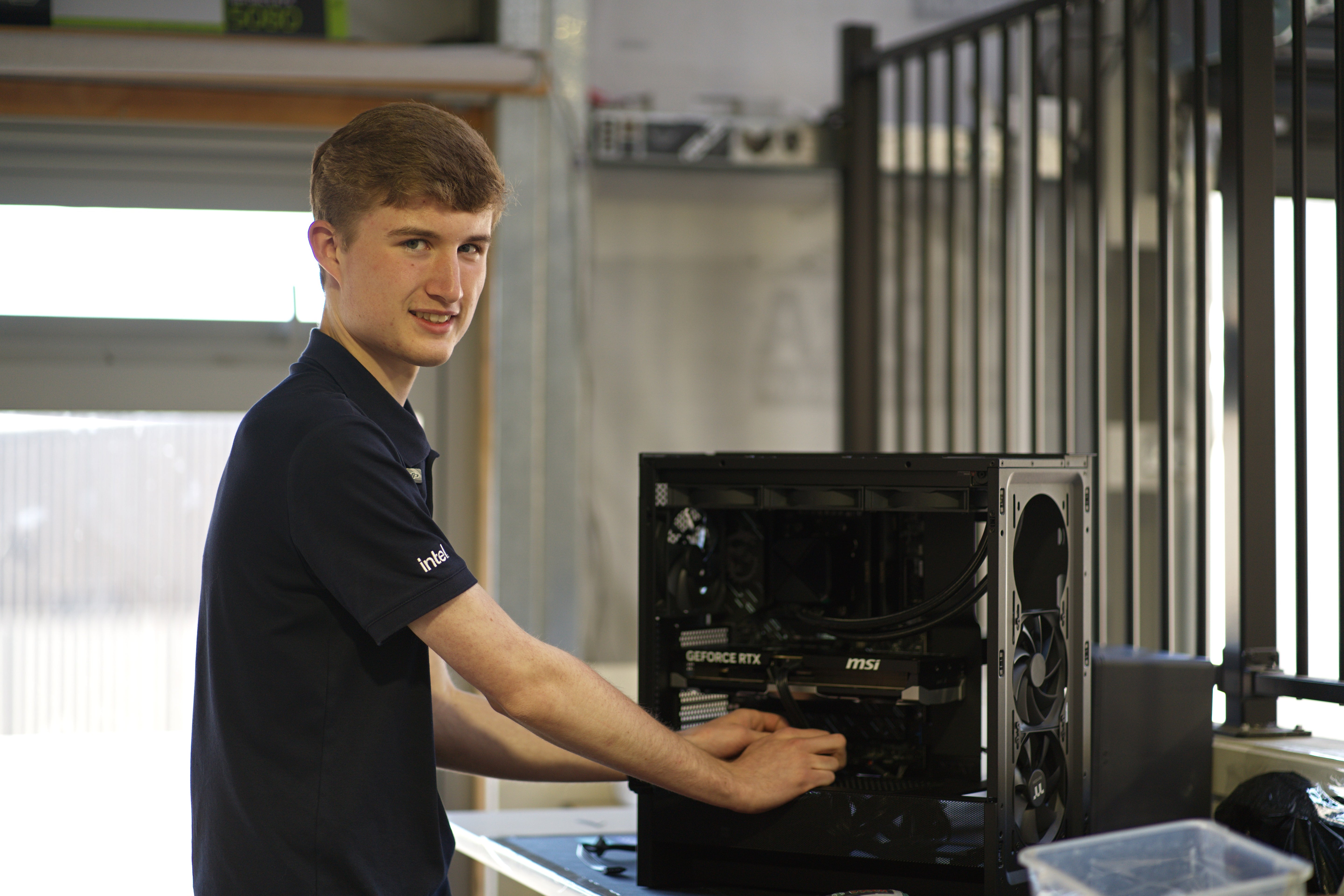 " I am the newest member of the Compulsion Tech team. The key parts of my role include assembly of prebuilt systems, prepping components and assisting the team when required. I find it satisfying to unbox the components and seeing them through into the final machine, then testing them to ensure they run their best and look perfect before they get sent off to their new homes.