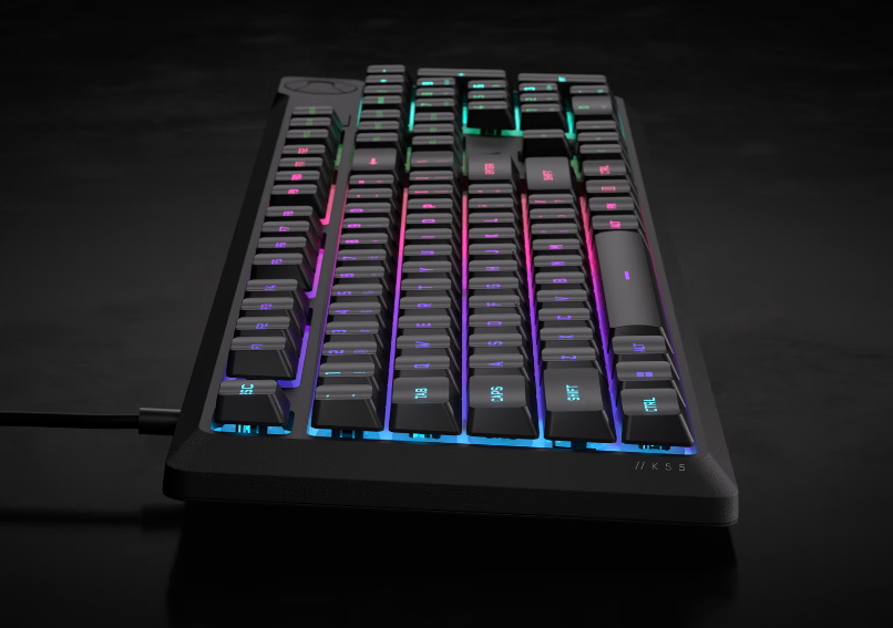 Take your gaming to a new level with the CORSAIR K55 CORE RGB Gaming Keyboard, where precision meets customization. This keyboard not only offers stunning RGB backlighting across an extended layout but also provides tactile feedback with its rubber dome switches. Enjoy a smooth gaming experience with a 1000Hz report rate and 12-key rollover ensure your inputs are always registered accurately. The K55 CORE is designed for convenience, with dedicated hotkeys for media control and WIN lock, plus a tangle-free rubber cable and adjustable height for ultimate comfort.