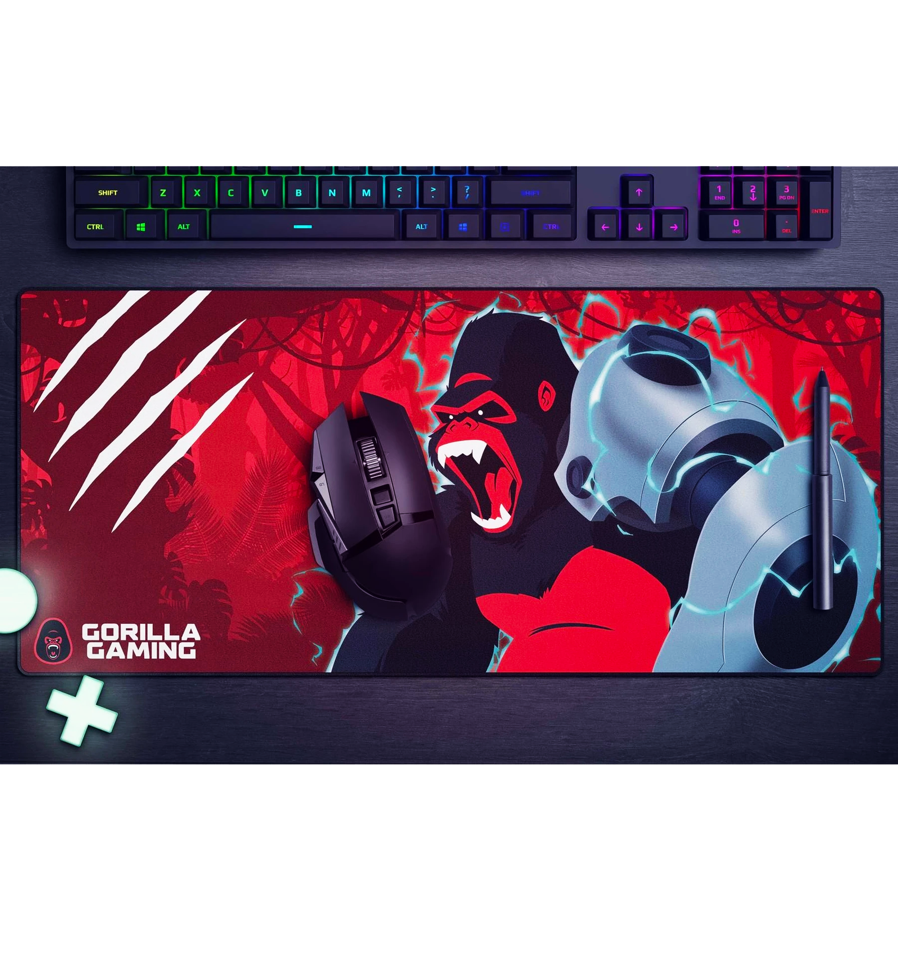 The Gorilla Gaming Extended Mousepad – Neon Red is a high-performance, full-desk surface engineered for gamers who demand precision, consistency, and style. Measuring 780×300×3 mm, it combines a high-density cloth structure for pinpoint mouse control with just the right amount of friction to ensure a smooth, stable glide and responsive tracking. Its anti-sweating edge design resists warping under heavy use, while the non-slip rubber base anchors it firmly to your desk for uninterrupted gameplay. The waterproof coating protects against spills and wear, making it durable enough for both casual sessions and competitive e-sports environments. Designed and tested in New Zealand by Gorilla Gaming’s own team of avid players, this extended mousepad brings the color, control, and reliability you need to push your skills further.