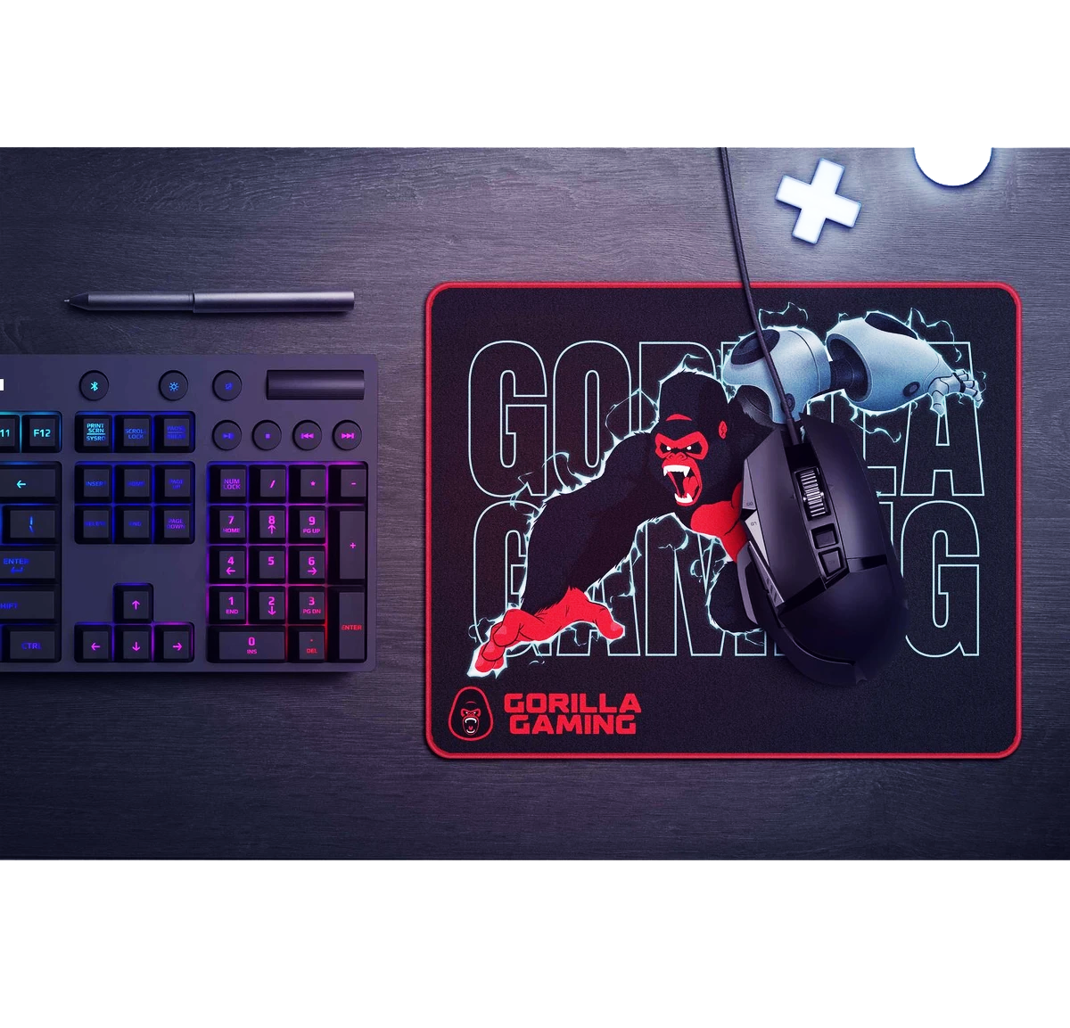 The Gorilla Gaming Mousepad – Extreme Black is a high-performance 400×300×3 mm gaming surface engineered to deliver precise, reliable mouse control, using a finely woven matte fabric that provides ultra-low friction for fast, smooth movement while maintaining the right amount of surface grip for accurate stopping and pixel-perfect tracking, supported by a dense rubber base that locks the pad firmly to the desk to eliminate unwanted slip, with reinforced anti-fray locked edging to prevent wear and curling over time, and a clean black Gorilla Gaming design that keeps the focus on performance while giving your setup a sharp, professional finish suited for everything from competitive esports to everyday gaming.